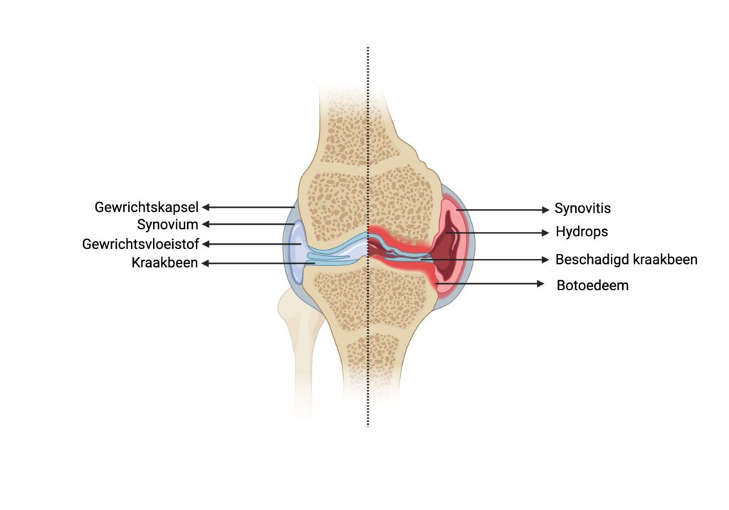Veranderingen die plaatsvinden in en rondom het gewricht: